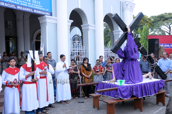 Mangalore, Mar 29: Good Friday, which is the most solemn day of the Liturgical Calendar, was observed in all solemnity and devotion by devotees in churches across Mangalore today.