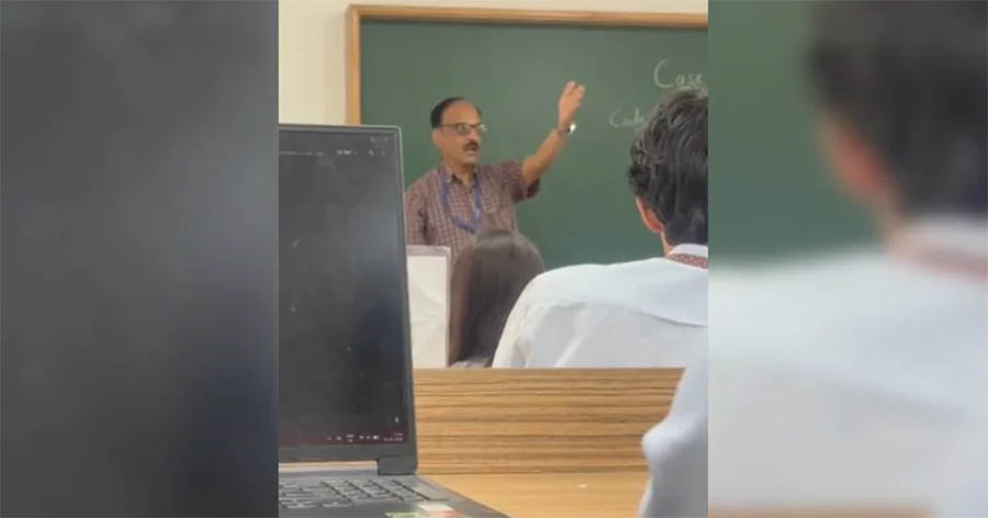 According to eyewitness accounts and a video recorded inside the classroom, the professor, identified as Dr Muralidhar Deshpande, reacted aggressively and allegedly referred to the student as a “terrorist” in front of others.