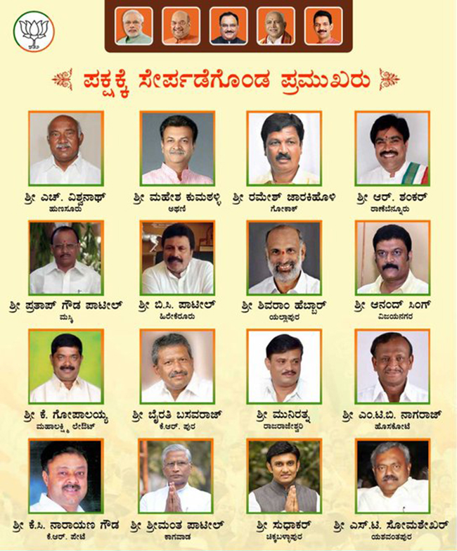 15 Disqualified Congress-JD(S) Karnataka MLAs formally join BJP