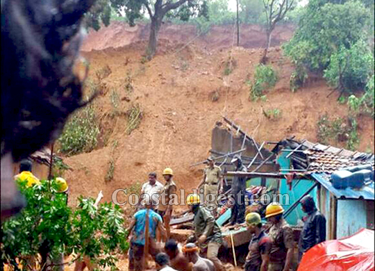 Karwar, Jun 12: A massive landslide triggered by heavy rain claimed the lives of three children including a small child at Tandarakuli in Divagi village of Kumta in Uttara Kannada district on Sunday.