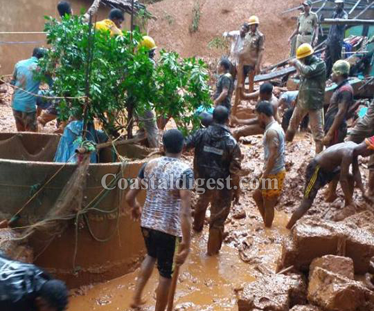 Earth moving equipment was used to clear the slush. The bodies of the three children were also extricated. Deputy commissioner S S Nakul and Kumata MLA Sharada Shetty visited the disaster zone and spoke to the victims. The injured have been admitted to the government hospital in Kumta. Families living in the area have been evacuated to the government school in Divagi and provided with food and clothes.