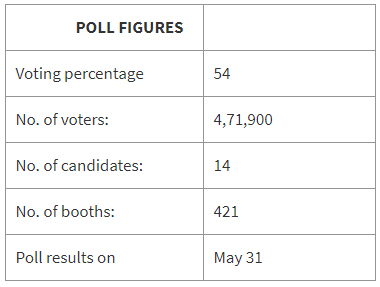 There are 421 polling stations in the constituency. Ten companies of CISF and 10 platoons of KSRP have been deployed to ensure free and fair poll, police said.