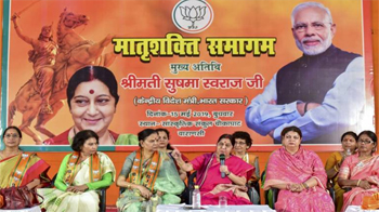New Delhi, May 16: External Affairs Minister Sushma Swaraj May 15 said the BJP has already crossed the majority mark after sixth phase of Lok Sabha polls and appealed to voters here to re-elect Prime Minister Narendra Modi with a record margin. Flagging off a motorcycle rally of women, Swaraj said the "relationship between you and Modi has become more strong...like a family in the past five years".