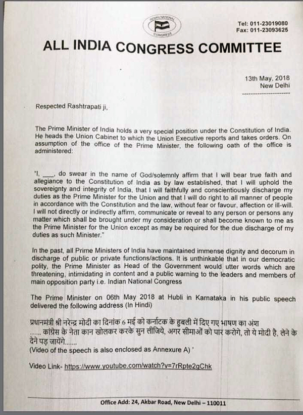 In the past, all Prime Ministers of India have maintained immense dignity and decorum in discharge of public or private functions/actions. It is unthinkable that in our democratic polity, the Prime Minister as Head of the Government would utter words which are threatening, intimidating in content and a public warning to the leaders and members of main opposition party i.e. Indian National Congress.
