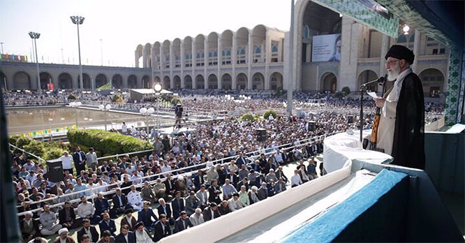 Ayatollah Khamenei delivered a public sermon at the weekly Friday (Jum’a) prayer to a huge number of worshipers gathered at the Imam Khomeini Grand Mosalla mosque in central Tehran.