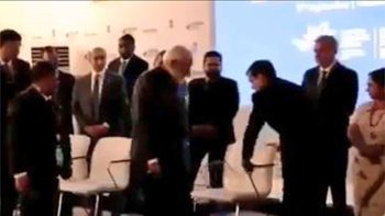 “PM Narendra Modi’s simplicity was seen today as he got the special arrangement for him removed and opted to sit on a chair along with others in Russia,” Goyal tweeted along with the video.