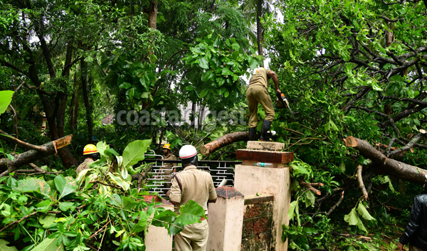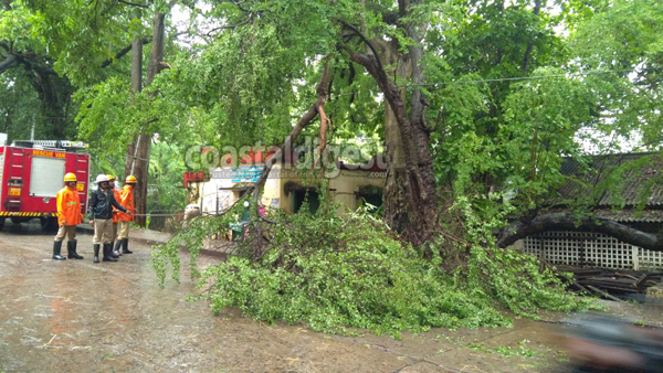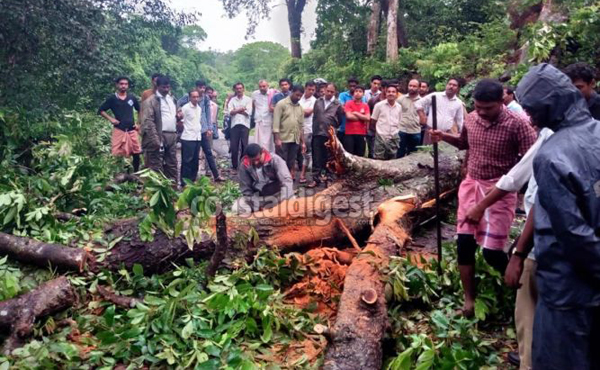 A huge tree fell on the road at Kumbhakkodu in Aletti of Sullia taluk and had disrupted the movement of vehicles for some time. Home Guards, Forest Department officials and local residents cleared the tree and helped vehicular movement.