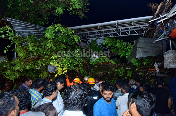 According to eye-witness accounts, the huge branch of the tree at the Nagarakatte fell at around 7 p.m. just after a spell of heavy rain of 30 minutes. There were brief spells of heavy rain throughout the day.