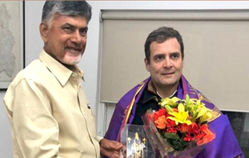 Before meeting the Congress chief, Naidu, who is spearheading an effort to cobble up an anti-BJP front, met CPI leaders Sudhakar Reddy and D Raja.