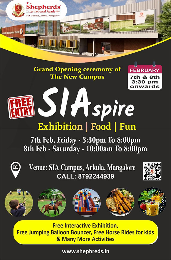 Mangaluru: The SIA Group of Institutions is set to unveil its brand-new campus at Arkula, Mangaluru, with a grand two-day celebration, SIAspire, on February 7th and 8th. This event promises a unique blend of exhibitions, entertainment, and adventure, offering an exciting experience for visitors of all ages.