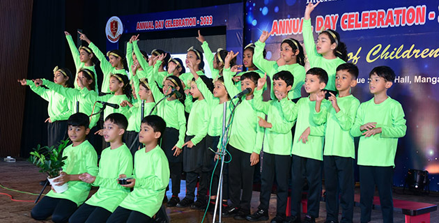 The enchanting journey commenced with the youngest performers from Mont1 expressing gratitude through an action song titled 'Pizza in my Pocket.' Mont2 students then painted a 'cotton candy sky' with their innocence, while Mont3 students used a 'Nasheed' to express the kaleidoscope of childhood emotions. The stage came alive with Grade 1 students presenting a Kannada action song 'Dhandikere Muduka' and a skit on the "Excessive Impact of Screen Time."