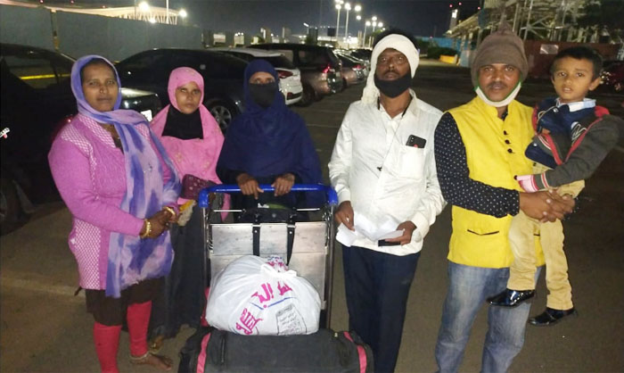 Riyadh/ Bengaluru, June 22: After rigorous efforts by P A Hameed Padubidri, Riyadh based pro-bono lawyer, social worker and Saleem Kodangalluru Kerala, a social worker based in AlQurayath, and Yasin Kalaburgi, social worker, based in Dammam, for more than a month, finally Fairoza Banu, who was in Sakakah and then in AlQurayat, northern parts of Saudi Arabia, touched down in Kempegowda International Airport, Bengaluru on Saturday (19/06/2021). She reached her hometown Davanagere, Karnataka safely. Her relatives warmly welcomed her in the Airport after two years.