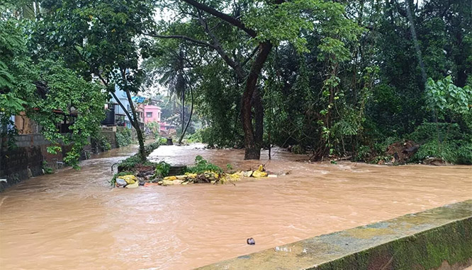 • At Kumpala, floodwaters lifted a Mahindra Thar and Maruti Swift, leaving the vehicles stranded mid-road. Dramatic videos of the incident circulated widely, drawing large crowds.