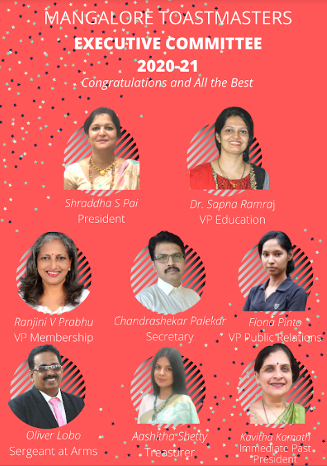 Mangaluru, Jul 10: The new team of office bearers of Mangalore Toastmasters Club for the year 2020-21 was installed in an online ceremony themed “Unlockdownable MTM” on 04th July, 2020. The new team will be led by Shraddha S Pai as President and her team consisting of Dr. Sapna Ramaraj as Vice President-Education, Ranjani Vittaldas as Vice President-Membership, Fiona Pinto as Vice President-Public Relations, Aashitha Shetty as Treasurer, Chandrashekar Palekar as Secretary and Oliver Lobo as Sergeant-at-arms. Dr. Ananth Prabhu, motivational speaker and cyber law investigator was the chief guest for the occasion.