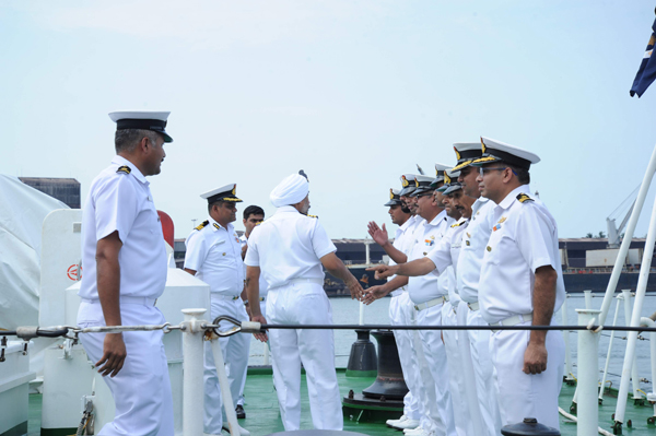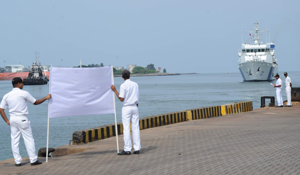 The indigenously built ship with advanced navigation and communication facilities anchored alongside Berth No 1 at New Mangalore Port at 9.40 a.m. It was welcomed with the national anthem and “Sarae Jahan Se Acha”. It has a complement of 14 officers and 88 men.