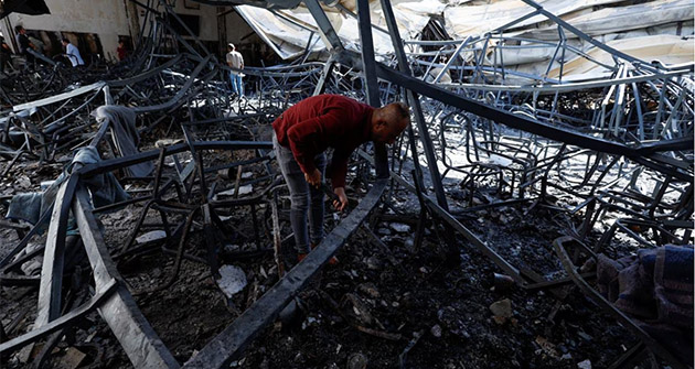 “The fire led to the collapse of parts of the hall as a result of the use of highly flammable, low-cost building materials that collapse within minutes when the fire breaks out,” civil defense said.